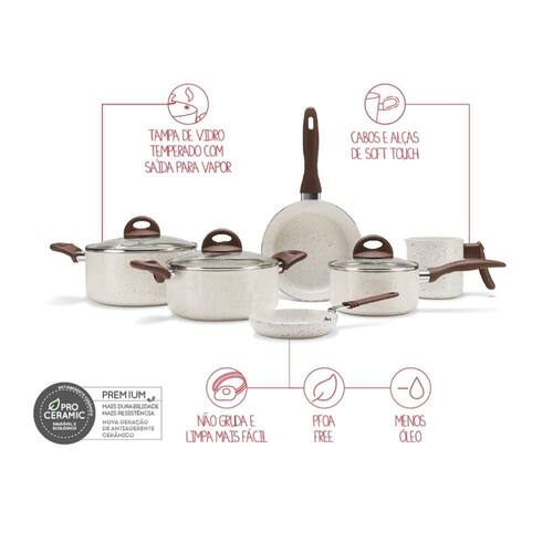 Jogo de Panelas 6 Pecas Ceramic Life Smart Plus Vanilla Brinox